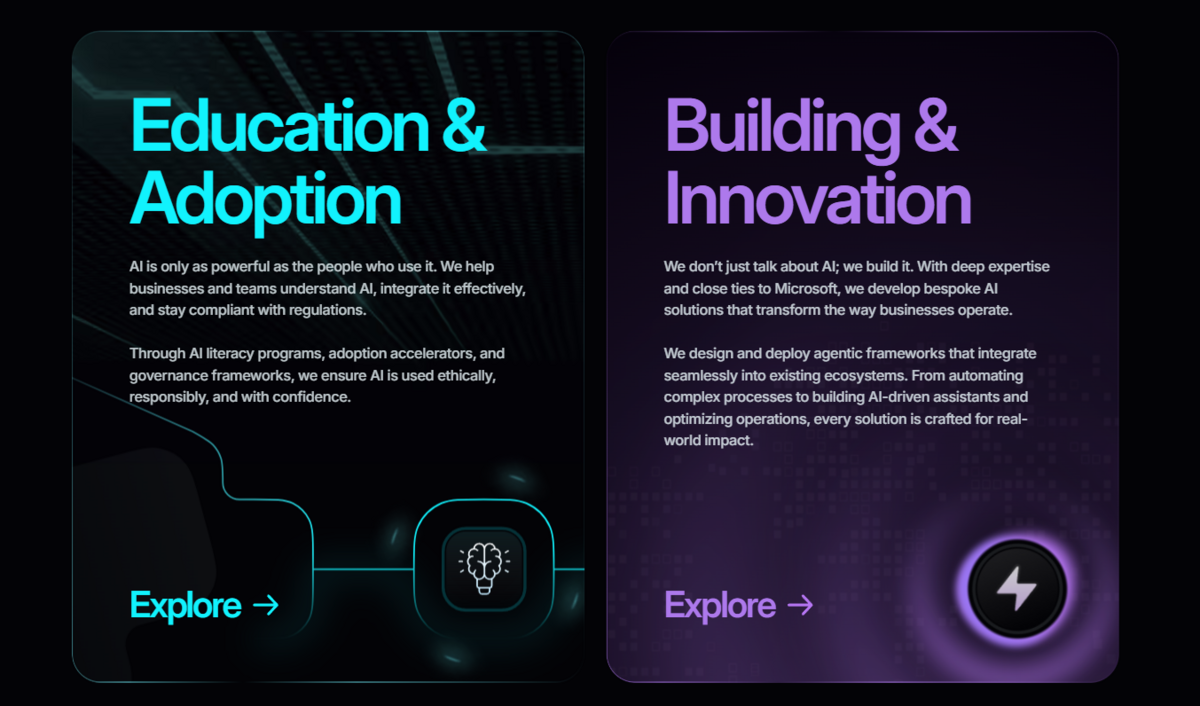 - Educational DNA – A unique combination of solution delivery and AI education, ensuring organizations not only deploy AI but also truly understand it.