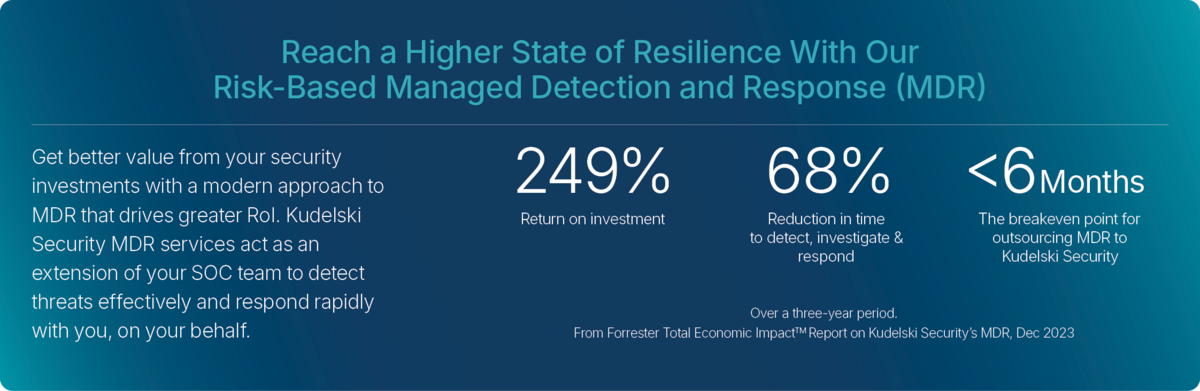 "Through constant collaboration, we have significantly reduced our attack surface and strengthened our cyber resilience. Kudelski Security’s expertise has given us the ability to prioritize incidents effectively and the confidence of knowing a trusted team is watching our back 24/7."