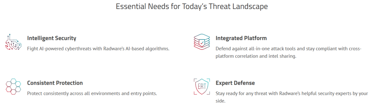 - AI-gedreven technologie: Radware EPIC-AI™ integreert AI en generatieve AI om beveiliging te versterken, incidenten sneller op te lossen en kosten te verlagen.
